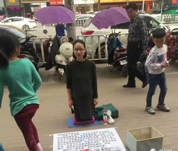 近日,阜阳城区一闹市路边出现一名自称是“教师”的孕妇,为给身患重病的丈夫凑齐医疗费,跪在街边乞讨。